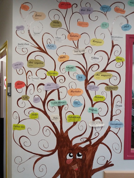 « L’arbre des Bonjours multilingue a permis de créer du lien entre les familles. En entrant dans la PMI, les familles regardaient l’arbre, et si leur bonjour n’était pas là, ils venaient le dire à l’équipe et on l’ajoutait. Suite à la création de l’arbre des Bonjours multilingue, l’équipe est en train de créer l’affichage d’ “Au revoir” multilingue. »